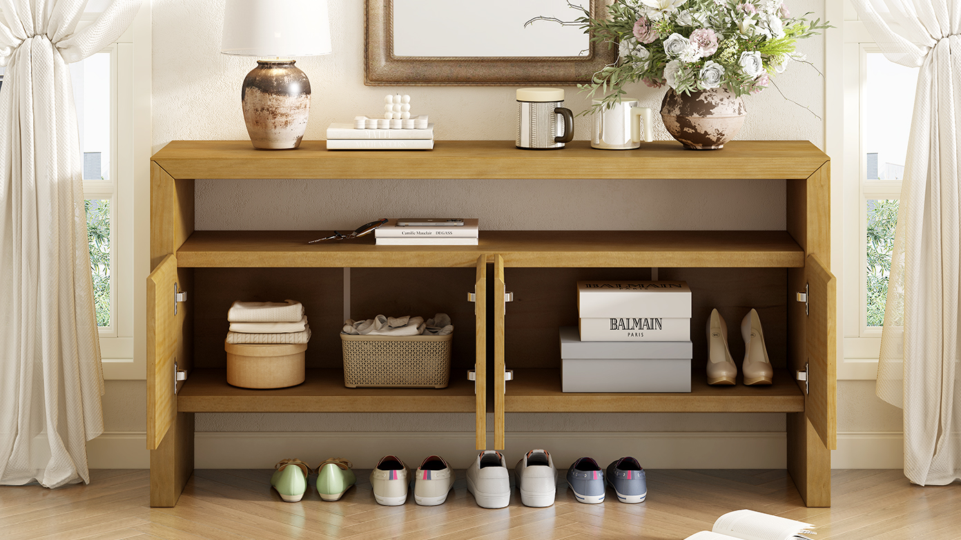 U-Style 60 4- Door Sideboard Modern Minimalist Solid Wood Veneer Sideboard With Open Shelf Natural Wood Grain Large Capacity Storage Console For L