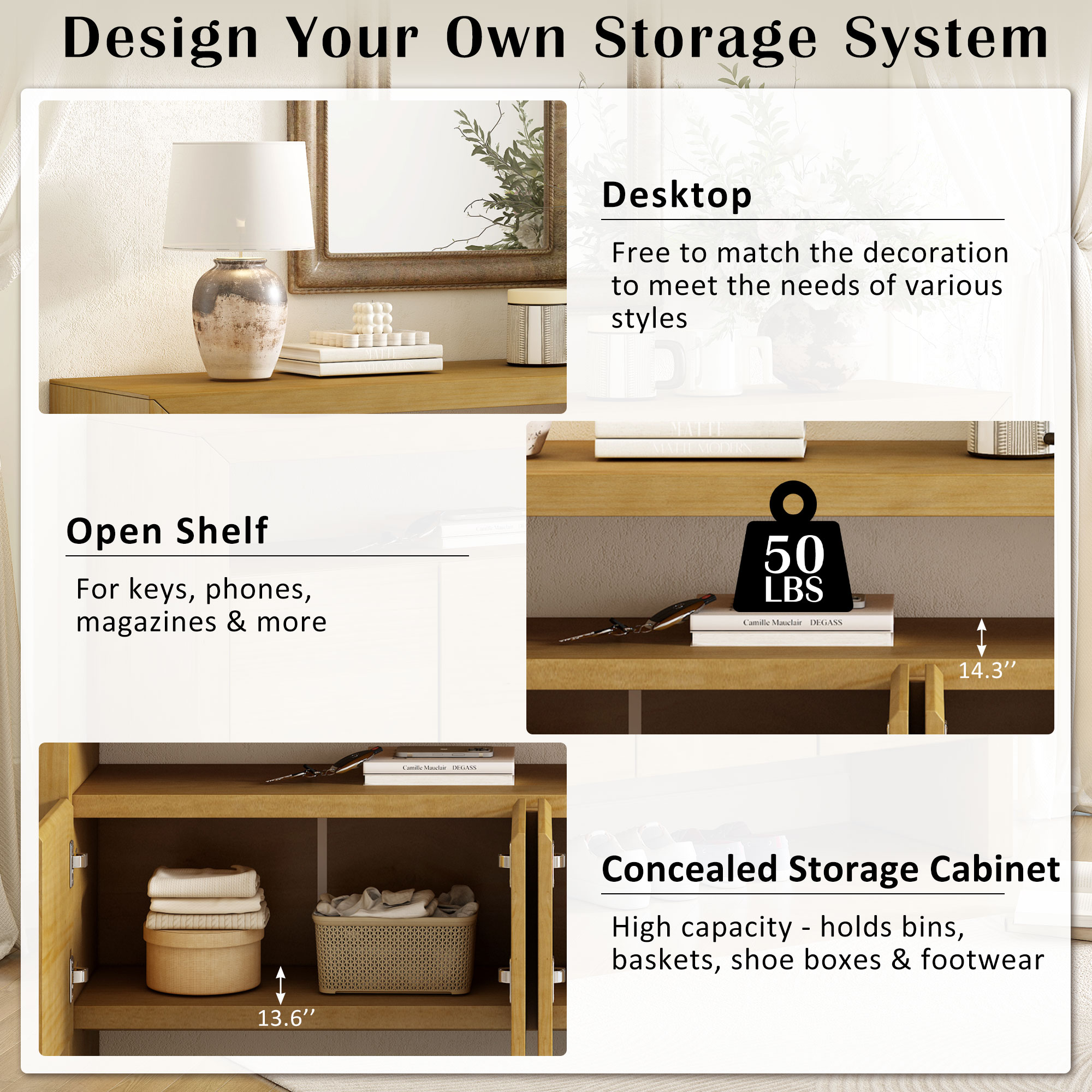 Home > U-Style 60 4- Door Sideboard Modern Minimalist Solid Wood Veneer Sideboard With Open Shelf Natural Wood Grain Large Capacity Storage Console For L