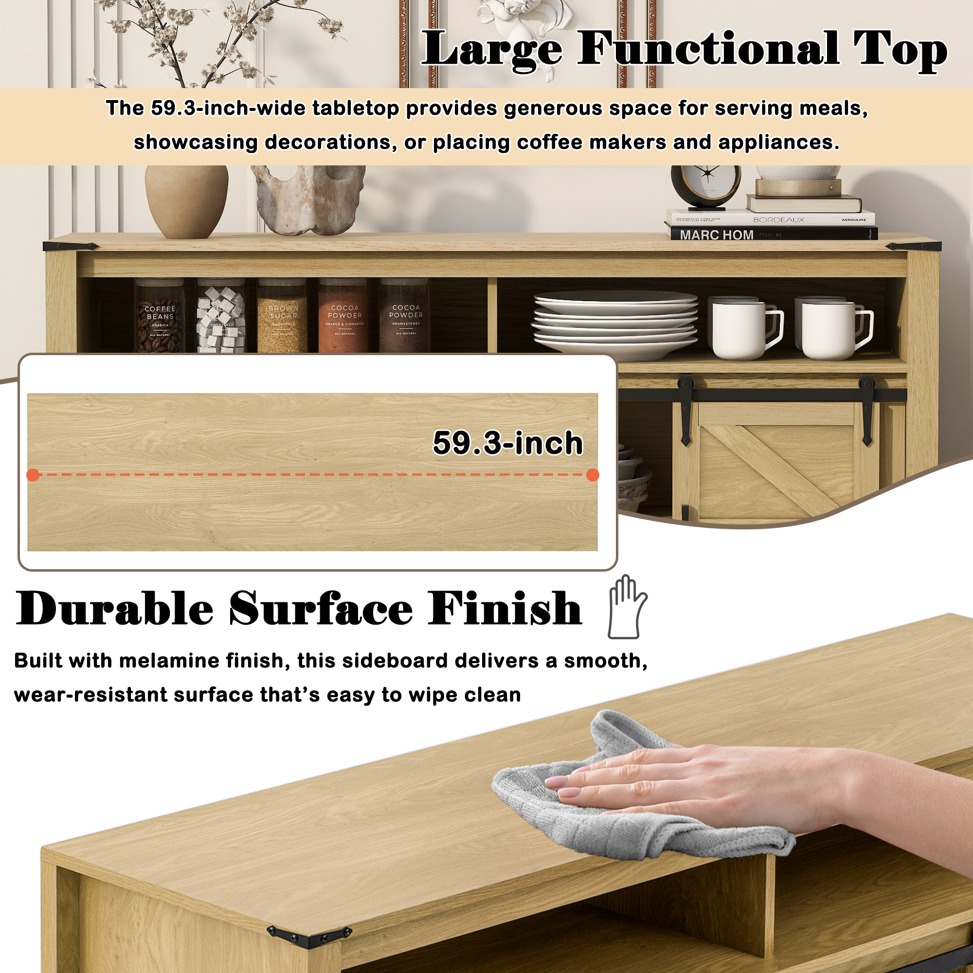 Product Name:U_STYLE 59.3''Sideboard with Sliding Barn Door and Mesh Panels,Farmhouse Buffet with Open Storage,Suitable for Living Room, Hallway, Balcony,Kitchen, Office