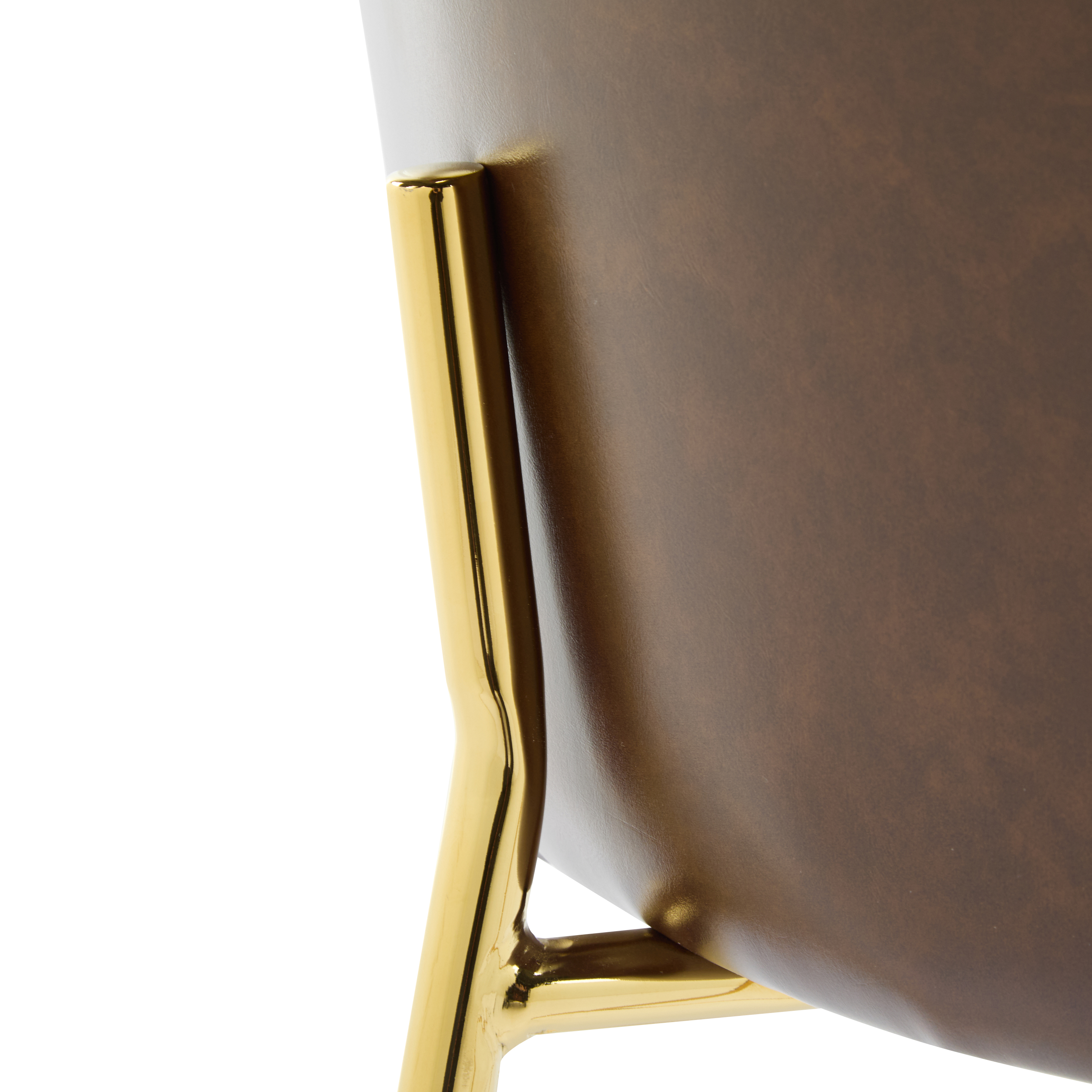 • Color: Dark Brown Faux Leather Upholstered Seat with Gold-Plated Leg